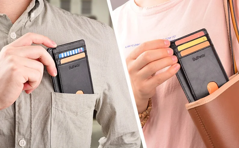 The Buffway RFID Wallet offers everyday functionality in a slim, travel-ready design. It slips easily into front pockets, small purses, or travel bags without adding bulk. Despite its compact size, it holds up to 8 cards, perfect for carrying essentials like IDs, credit cards, and membership cards. Built-in RFID blocking technology helps shield your personal information from digital theft, making it a reliable companion for shopping, commuting, or globetrotting.