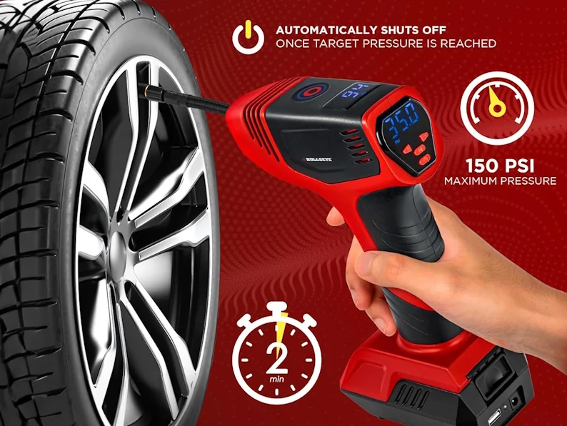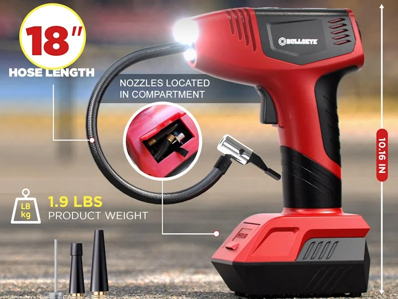 For those seeking a versatile and lightweight option, the Bullseye Pro Tyre Inflator is a solid contender. While it boasts convenient features like pre-set pressure and multiple charging options, it may feel overpriced for what it offers, especially when compared to our top pick. Its compact design and multiple charging options make it a convenient choice for everyday use, though it may not be as durable or fast as other models.
