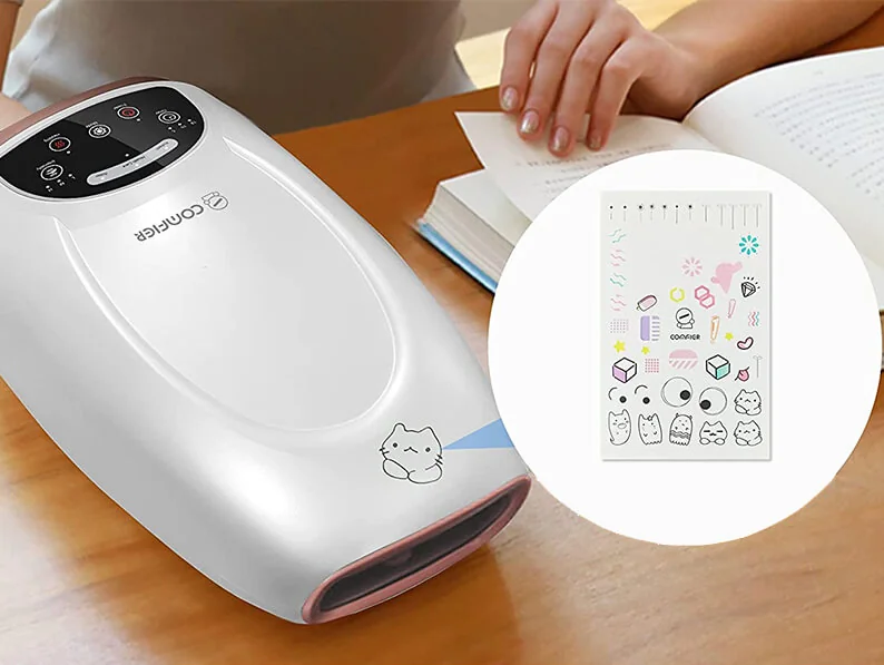 The brand name speaks for itself – Comfier is a very comfortable hand massager. Because the massage modes are so adjustable, you can select the type of pressure that would make you feel the most relaxed. Another cute design detail – Comfier comes with a sticker sheet, so you could make your hand massager more unique and whimsical. In terms of use, however, this device is not as simple as RelaxMit. There are way more buttons though, and the touch-screen controls do make the process a little bit easier.