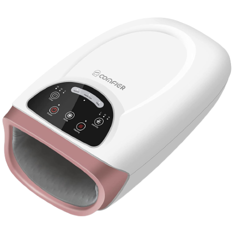 Second on our list, Comfier, is not only a great hand massager but would also make an amazing gift. It may be more expensive than our No 1 pick, but it has as many great features to offer. This hand massager has 3 massage modes, each accompanied by 3 intensity levels, so customizing your preference has never been so easy. Just like RelaxMit, Comfier fits your entire palm and fingers, so you can get a thorough massage experience. Also, there is an optional heating mode to warm up your cold hands. This device is wireless and rechargeable, so suitable for taking to the office or on trips.