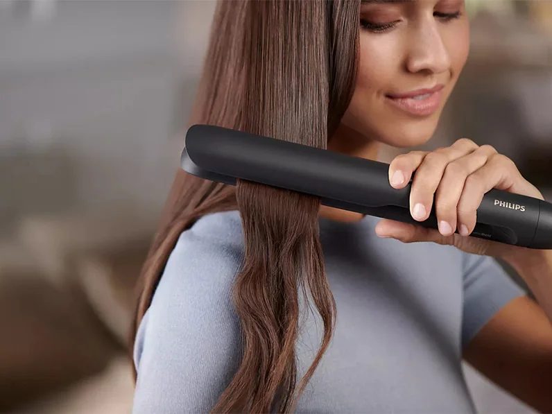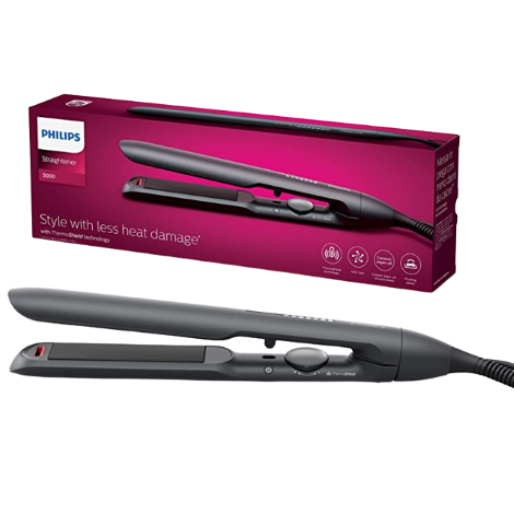 La plancha de pelo Philips serie 5000 tiene el mismo aspecto que cualquier otro dispositivo de este tipo, pero hay algunos bonitos detalles adicionales que mucha gente parece apreciar. Por ejemplo, la punta del dispositivo está hecha de un material aislante del calor que la mantiene fría. Así puedes sujetarla para alisarte el pelo de forma más cómoda. Su rango de temperatura va de 120°C a 230°C, y puedes leerlo en su pantalla LED para un control más preciso. Es un gran dispositivo, e incluso trae una alfombrilla enrollable resistente al calor para que puedas guardarlo de forma segura incluso si todavía está caliente.