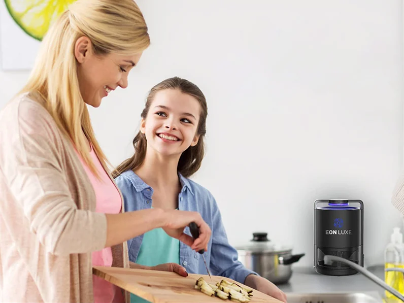 Le deuxième meilleur piège à moustiques sur cette liste est produit par Eon Luxe. Il ne contient aucun produit chimique ou toxique, il peut être donc utilisé en toute sécurité à l'intérieur sans effet sur votre santé, celle de vos enfants ou de vos animaux domestiques. Cet appareil fonctionne de manière similaire à notre premier choix, en émettant une lumière UV qui attire les insectes comme les moustiques, les mouches, les moucherons et les phalènes. Un ventilateur à l'intérieur de l'appareil créé ensuite un effet d'aspiration qui attrape les nuisibles volants et les projette vers le fond du piège, où ils sont collés sur un tampon collant qui les empêchent de sortir. Eon Luxe peut couvrir jusqu'à 30 mètres carrés d'une surface pour la protéger des insectes.
