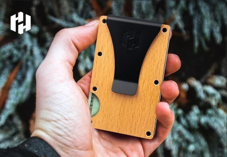 This Hayvenhurst RFID Wallet delivers modern security with minimalist appeal. Made from durable aluminum, it blocks wireless theft and offers quick card access at the push of a button. A built-in money clip adds functionality without bulk, while its sleek design ensures comfort and a clean, professional look.
