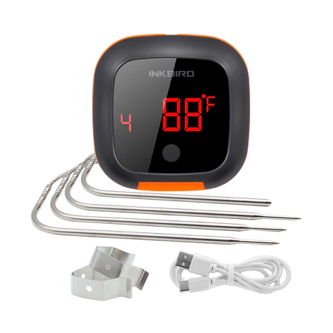 The Inkbird IBT-4XS comes with a practical approach for anyone juggling multiple items on the grill. It has four probes, so you can keep an eye on several different meats or check grill temperature alongside your food. It connects to your phone via Bluetooth, which sounds handy in theory, but the range can be a bit hit-or-miss, especially if you’re moving around your backyard.