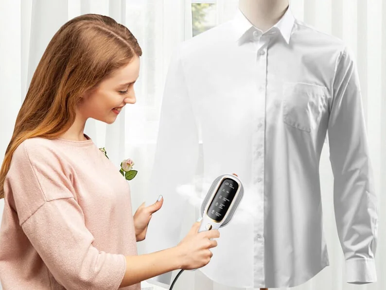 The JMNGSHU clothes steamer is a another handheld option aimed at quick garment touch-ups and on-the-go wrinkle removal. Designed with convenience in mind, it offers lightweight handling and a simple one-button operation. It supports vertical steaming and includes a small water tank suitable for light-duty steaming needs at home or while traveling.