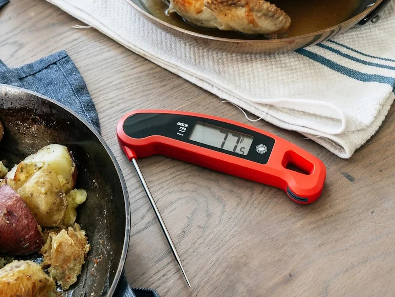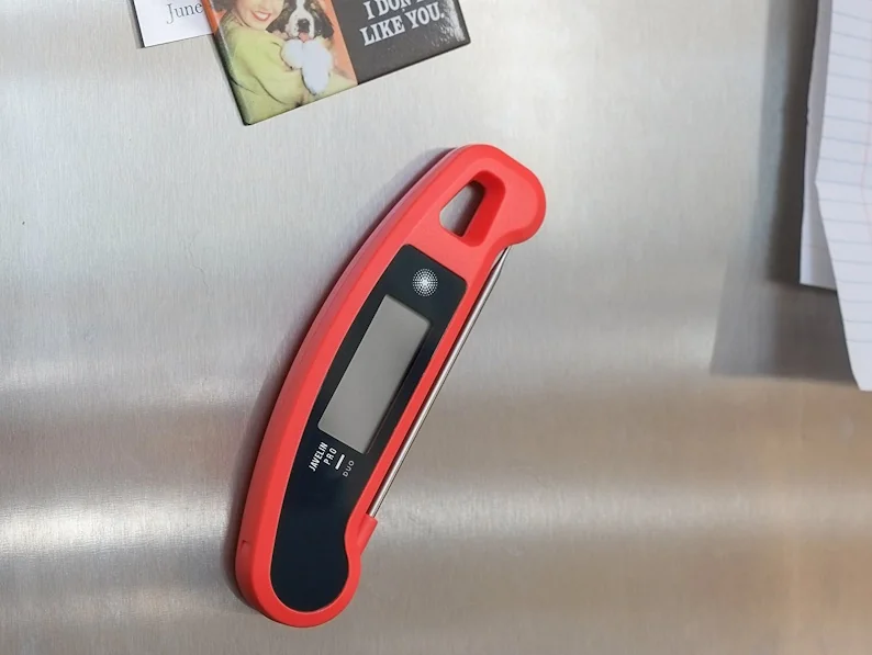 The design is compact, foldable, and has a magnetic back for easy storage on the fridge or oven hood. This thermometer feels more like a sturdy, no-frills tool rather than a flashy gadget. The Javelin PRO Duo is designed to handle everyday kitchen work, and while it isn’t waterproof, it’s splash-resistant, so light kitchen use won’t be a problem.