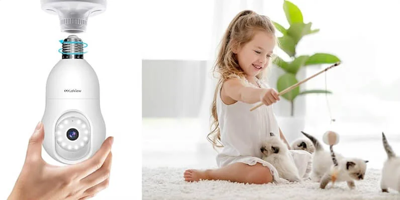 Sleek and discreet, the LaView fits effortlessly into any home setting. Simple setup involves screwing the camera into any standard light socket and connecting to your home Wi-Fi via the LaView app. The app controls are intuitive, offering everything from live footage access to alarm settings. It also supports SD cards up to 128GB, ensuring all your footage is securely stored.