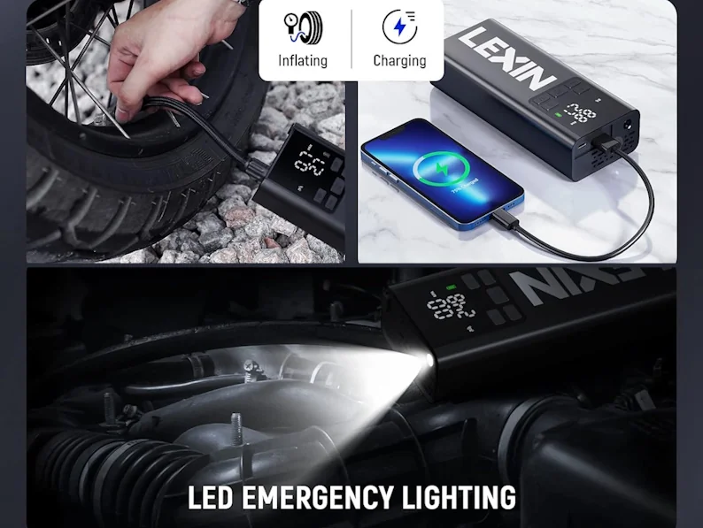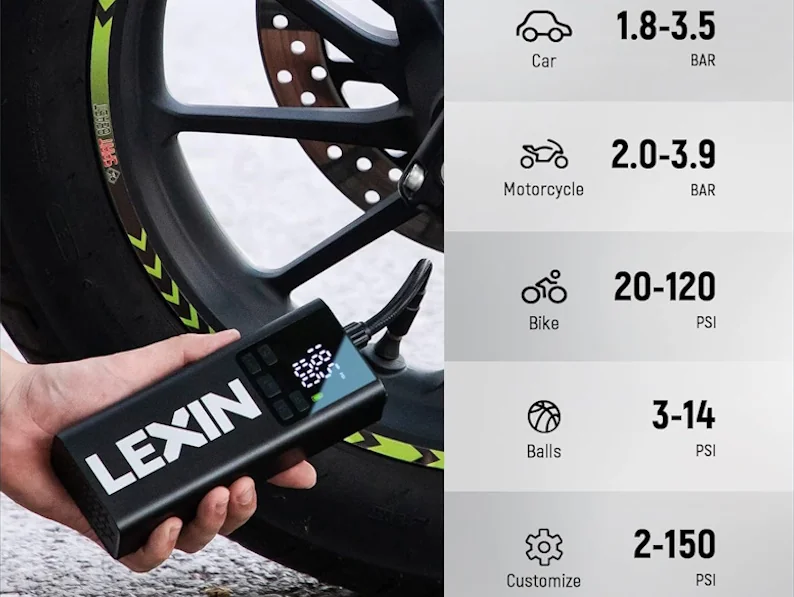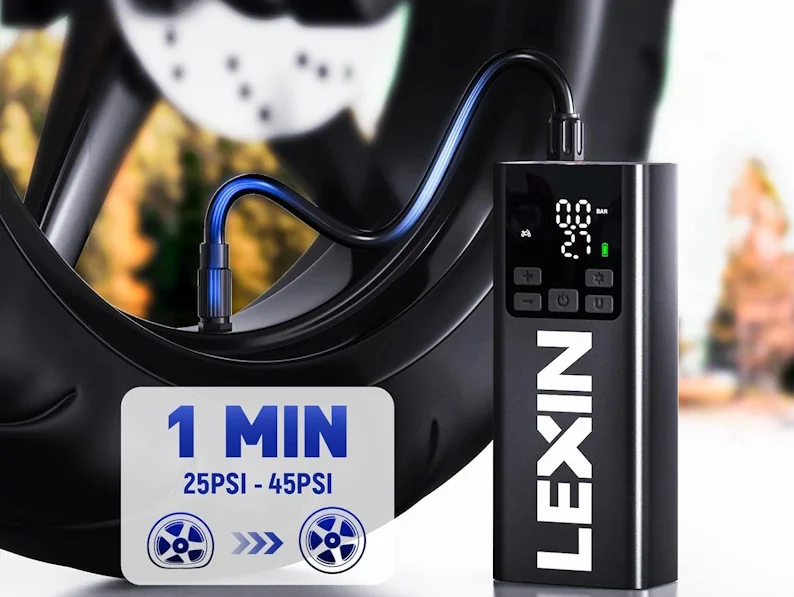 The LEXIN P5 tyre inflator combines sleek aesthetics with practicality. Its compact and portable build makes it easy to store in your car or carry for various uses. The robust construction is built to withstand regular use, ensuring longevity and reliability. While it is priced higher than some other options, the durability and quality materials used in its construction justify the investment, making it a dependable choice for long-term use.