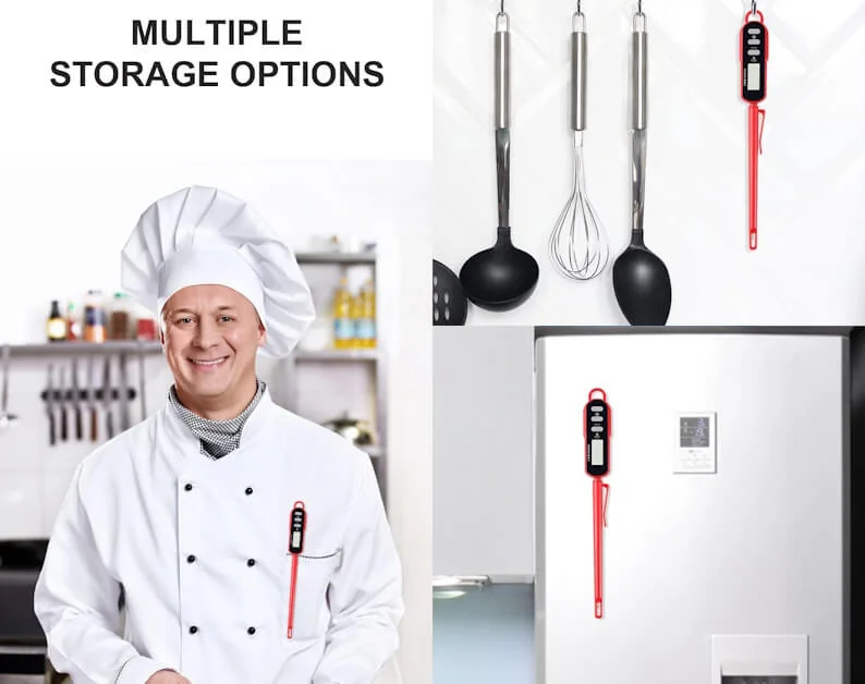 This thermometer keeps things simple. It powers on quickly, gives readings in 2-4 seconds, and includes a backlight for easy use in dimly lit kitchens. The lock feature lets you hold the temperature reading without rushing, and its magnetic back makes storage hassle-free. While it’s straightforward and functional, it lacks the advanced presets and touchscreen convenience found in ThermoReady.