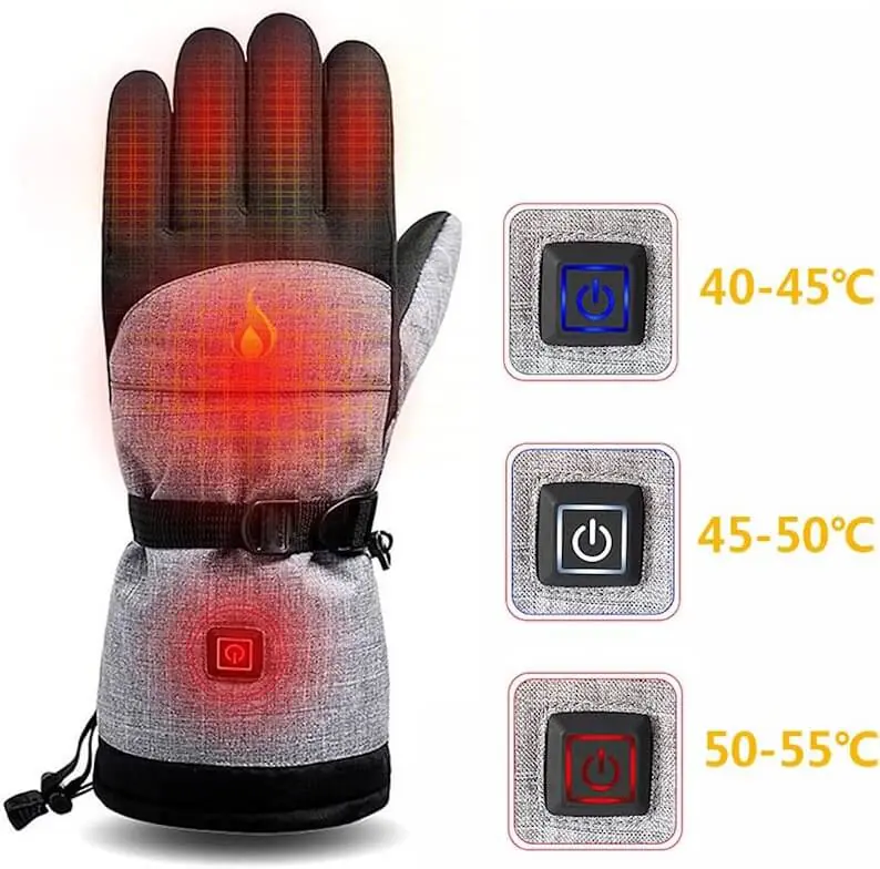 The Riloer heated gloves are designed to keep you warm in extreme cold conditions. These gloves are equipped with built-in heating elements that provide adjustable warmth to your hands, making them perfect for outdoor activities in winter. They are powered by rechargeable batteries, allowing you to control the temperature based on your preferences. With multiple heat settings, you can easily customize the warmth to suit your needs, whether you're skiing, snowboarding, or just enjoying the outdoors in cold weather.