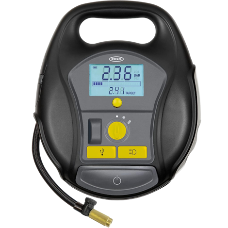 Last but not least on our list is the Ring RTC6000 tyre inflator. It stands out as a robust and feature-rich option in the realm of portable tyre inflators. Its main features include a high-performance compressor that delivers powerful and efficient inflation, capable of handling a variety of tyre sizes and types with ease.