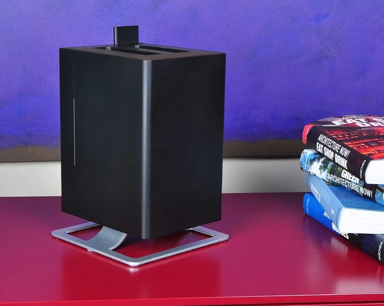 Many people seem to appreciate the design of this air humidifier. As a matter of fact, this specific model has even won a design award! Sleek and modern, Anton will blend in any interior and won’t become an eyesore. Its operating buttons are hidden on the underside of the device, so this air humidifier looks as minimalistic as it can be. Anton also features an LED water indicator light which turns red to let you know the tank is empty. The use of this device is also as uncomplicated as possible. Just pour the water inside the water tank and select the mode. Anton has a handy instruction manual that will answer all further questions. Keep in mind that it’s best for the device to use distilled water, especially if your tap water is extremely hard or calcified.