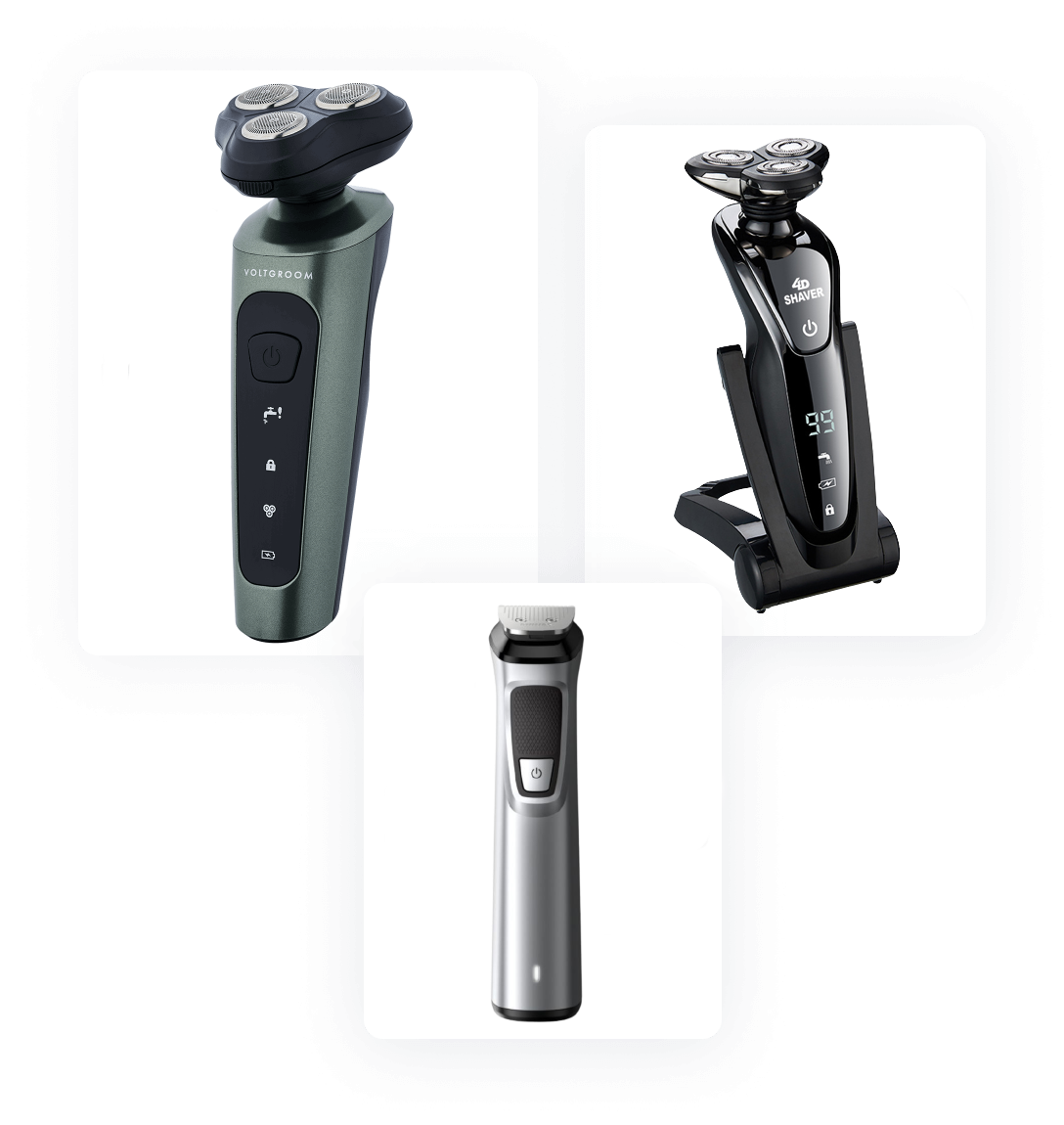 Coming with a three-head rotation design and multiple accessories, VoltGroom is exactly what you need for a quick and smooth shave.