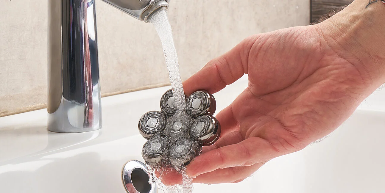 Nobody wants a device that is difficult to look after. So thankfully, BarberScape electric head shaver isn’t like that. This shaver has an IPX5 waterproof rating, meaning you can use it for both dry and wet shaving, use it in the shower, and, most importantly, rinse the shaven hairs out under tap water! Another excellent maintenance feature in BarberScape is the self-sharpening blade technology, which keeps the blades sharp for a long time without you needing to worry. In addition, most of the hair is collected in the special chambers under the razors, so your bathroom is protected from hairs sprinkled everywhere, and this way, it’s much easier to clean the shaven hairs.