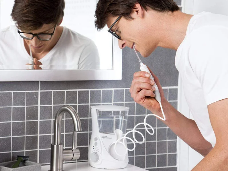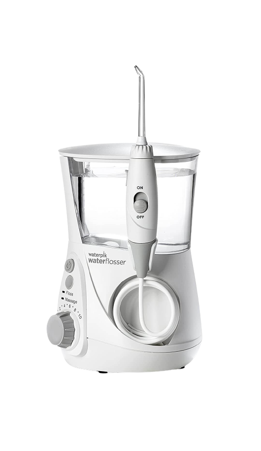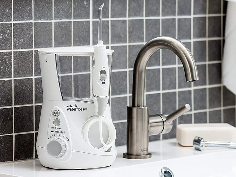 To be honest, it will take a bit of time and patience to test every dial and button of this device. But once you find out what everything does, it becomes very easy to use it. It’s also a benefit that this water flosser comes out of the box almost entirely assembled. Design, however, is its main flaw. While other devices on this list somewhat resemble electric toothbrushes (just slightly bigger), Waterpik will definitely need some space. It’s also not conveniently portable – almost impossible to take on trips and needs to be somewhat close to both an electric port and the sink.